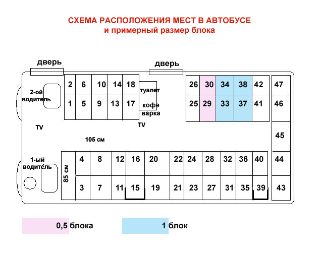 БЛОК - это место в автобусе, занимаемое 4 сидениями (2 ряда) с